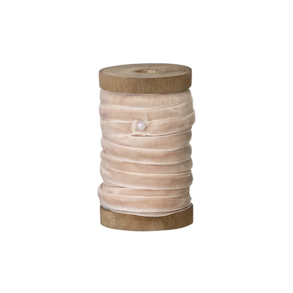 10 Yard 1/4"W Velvet Ribbon on Wood Spool, 3 Colors