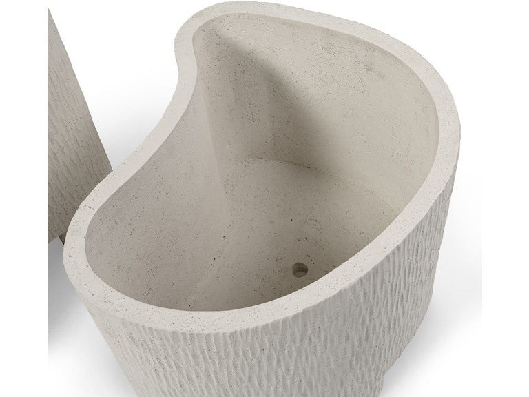 Crafted from durable stone composite, the Nadia Outdoor Planter features an aged white textured finish that evokes coastal elegance and timeless charm. Its sculptural silhouette adds depth to patios, garden spaces, or indoor sunrooms. Suitable for outdoor use, this planter coordinates beautifully with the Nadia collection and offers a versatile foundation for greenery in any refined setting