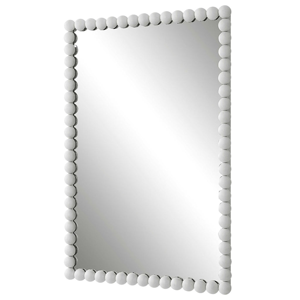 This iron frame features a beaded profile finished in a stylish matte white. May be hung horizontal or vertical.