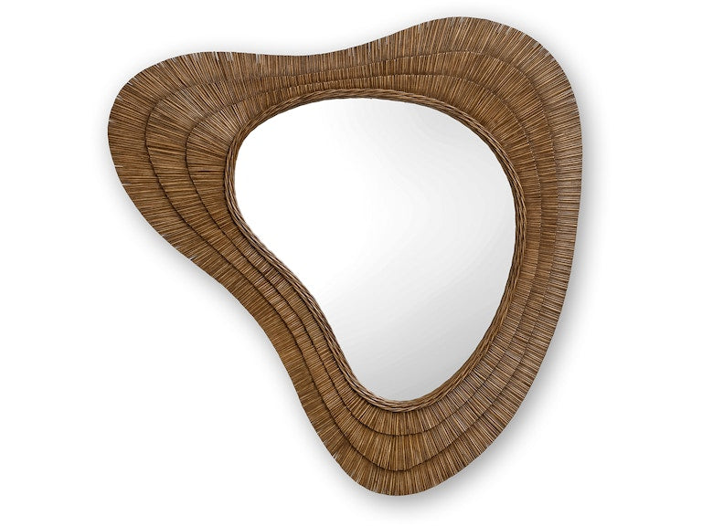 Mirror set in a braided core rattan trim featuring a laminated core rattan layered frame, all in a rich walnut finish. Comes with metal cleats to mount all ways.