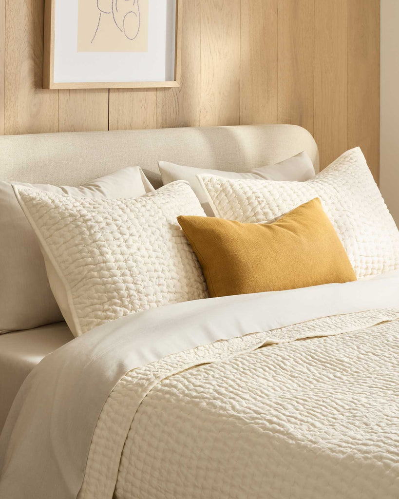 All-natural, artisanal, affordable luxuries. This versatile quilt uses the finest European linen-and-cotton blend, featuring a handcrafted pick-stitch quilting technique that creates subtle texture to instantly elevate any bedroom look.