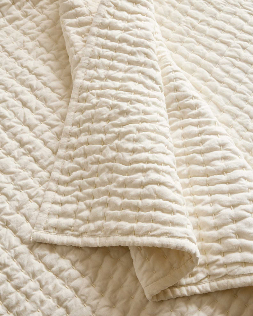 European Linen Cotton Stitch Quilt Collection - Ivory, 2 Sizes