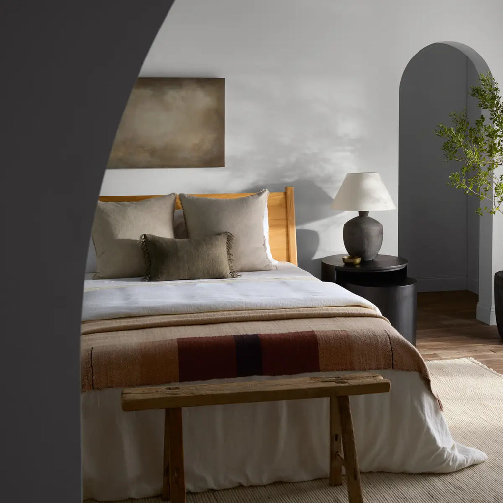 This Margosa throw showcases stonewashed and embroidered craftsmanship, blending soft cotton with hand-spun wool for a textured and artisanal finish. Grounded in ancient textile traditions, this collection brings natural designs and textures through indigenous techniques, nature-inspired colors, and raw fibers. The Soroush throw offers a color block design in natural cream, brown, and beige hues. This accent piece of 100% handwoven wool provides a global style to any contemporary home.