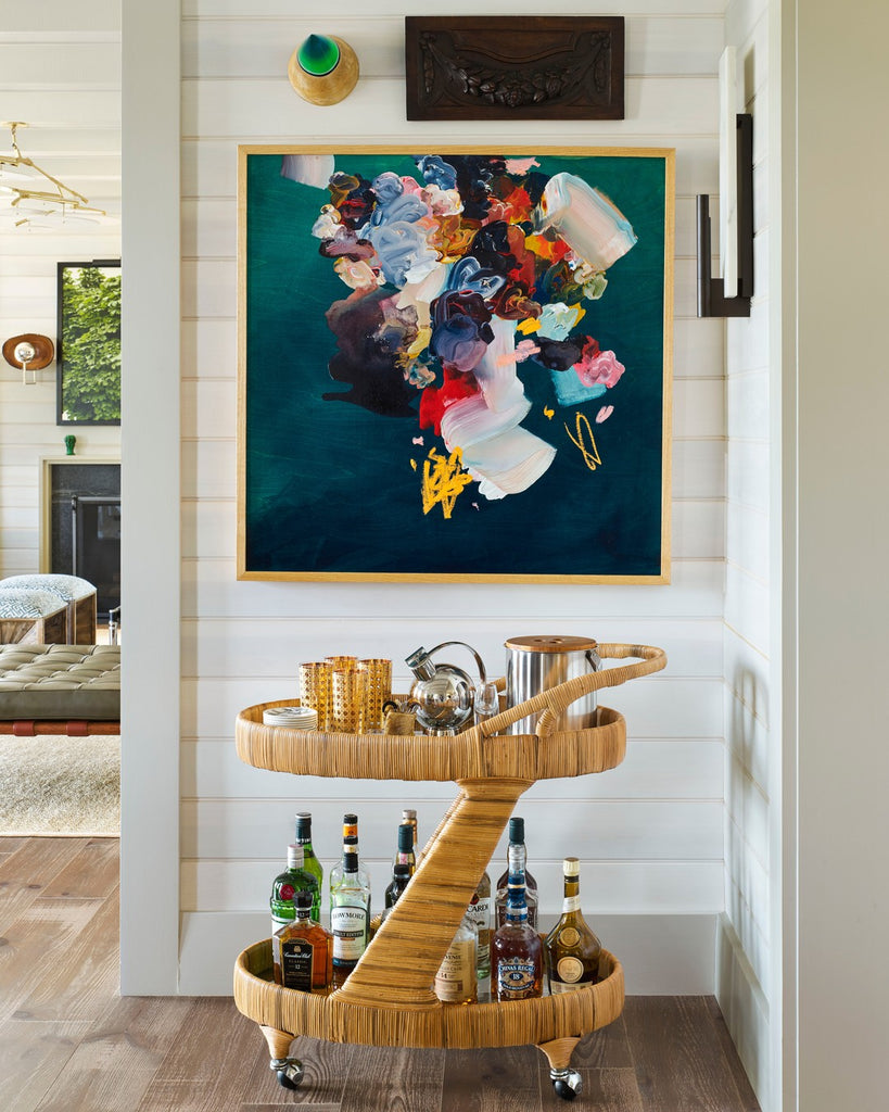 The Lulu's retro space-age shape is brought down to earth with its wrapped rattan exterior. Our premiere bar cart leaves no detail overlooked, boasting two glass shelves, four brass wheels, and a whole lot of class.