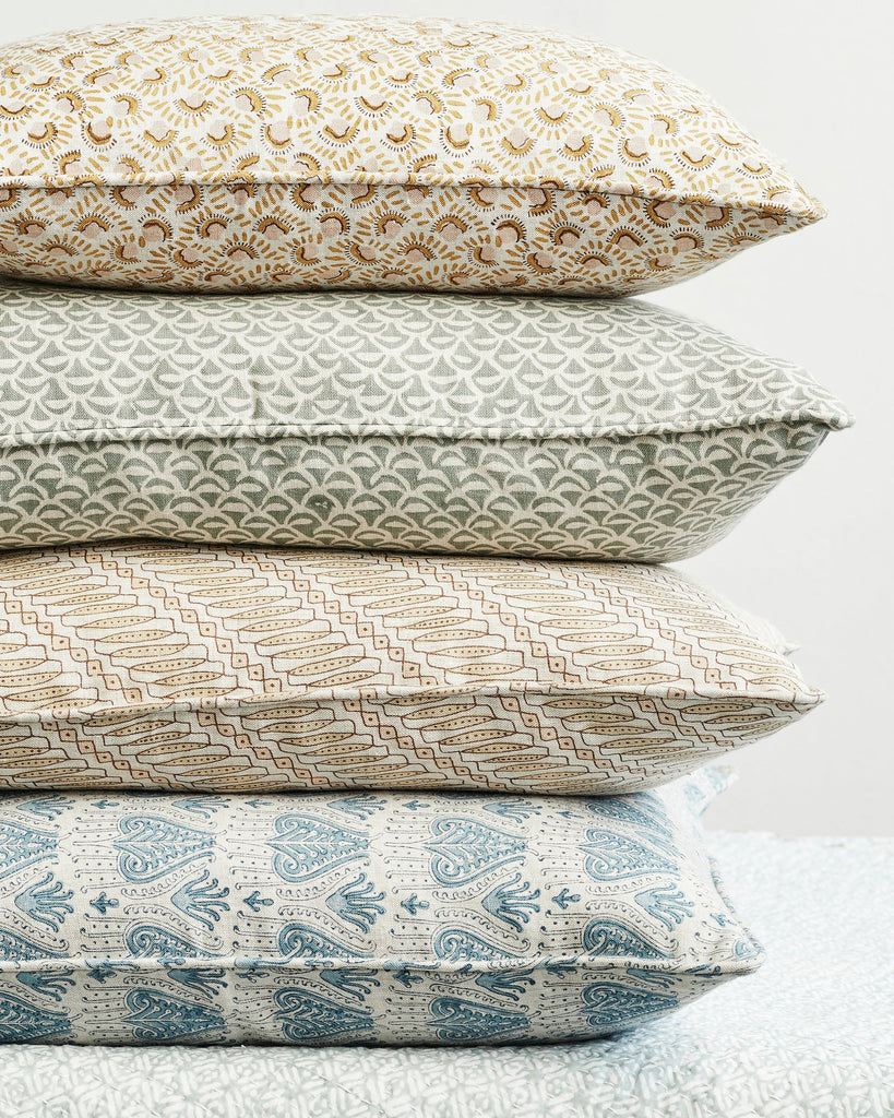 A modern interpretation of a traditional scollop design, Moro is enhanced by the subtle imperfections created by the hand block printing process.