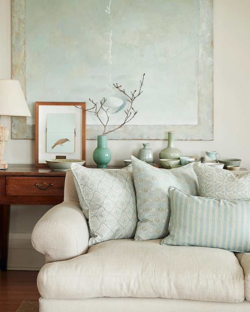 With its soft, rhythmic pattern, Tahiti captures the relaxed spirit of island living and infuses interiors with a breezy, coastal charm. Its design is shaped through a thoughtfully crafted block printing process.
