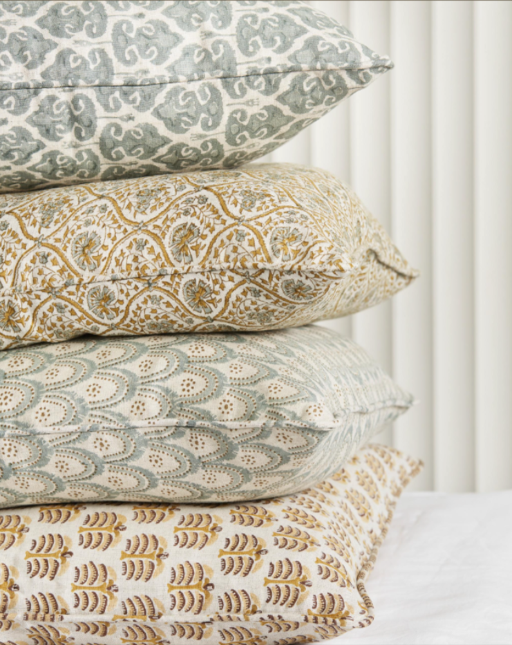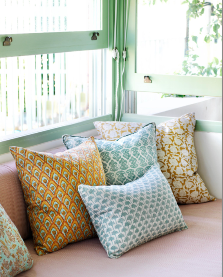 Cold machine wash separately on a delicate cycle with a very minimal amount of mild liquid detergent. Do not dry clean, tumble dry, soak or bleach. Iron at medium setting if necessary. For spot cleaning, gently dab the area with water (do not rub). Keep out of direct sunlight to avoid excessive fading. Due to the nature of hand printed fabrics, variation in colour and pattern may occur.