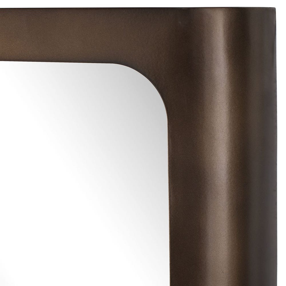 The Fischer Mirror offers a sleek, modern statement with its softly curved iron frame, finished in dark golden bronze. May be hung horizontal or vertical.
