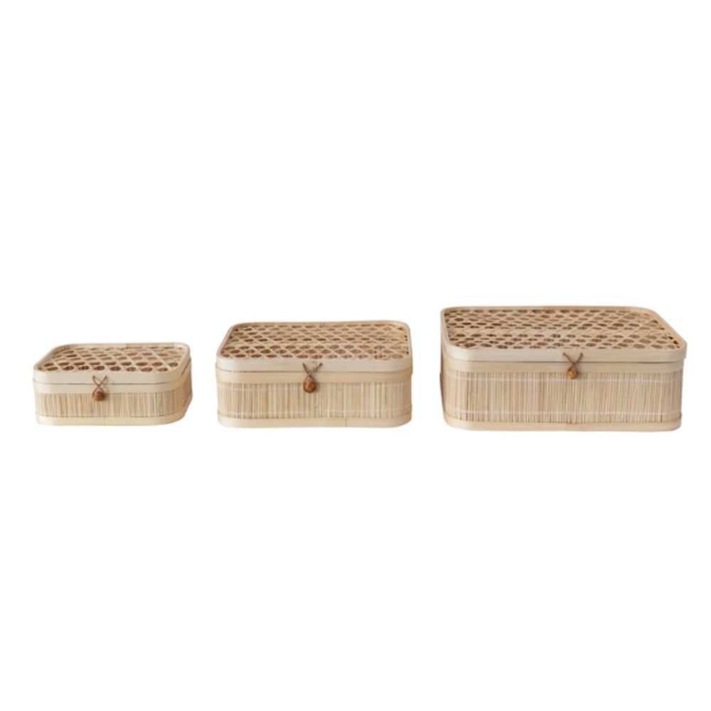 Hand-Woven Bamboo Boxes with Closures, 3 Sizes
