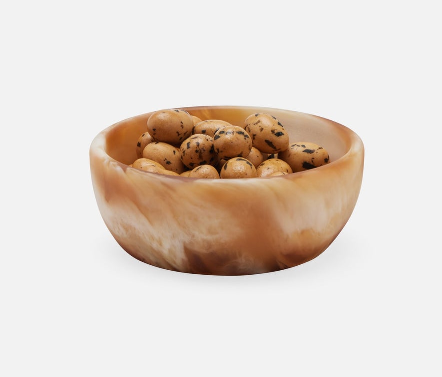 An elegant series of two-tone resin serving bowls, Hugo's mesmerizing marbleized finish brings joy to tabletops.