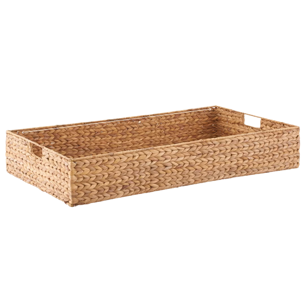 Turn unused spaces into stylish storage with this woven water hyacinth bin, perfect for organizing under coffee tables, consoles, or even as an ottoman tray.