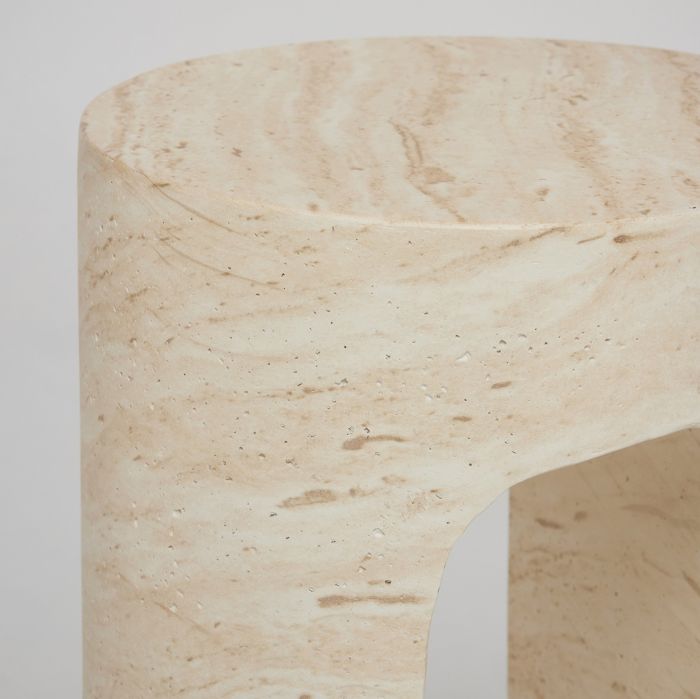 With its refined sculptural form, the Wesley Drink Table in cavern marble concrete effortlessly balances elegance and practicality, serving as both an artistic statement and a functional piece.