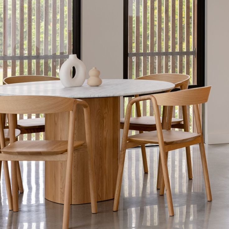 Tathra Round Dining Table, Light Oak, Marble, 61"Dia
