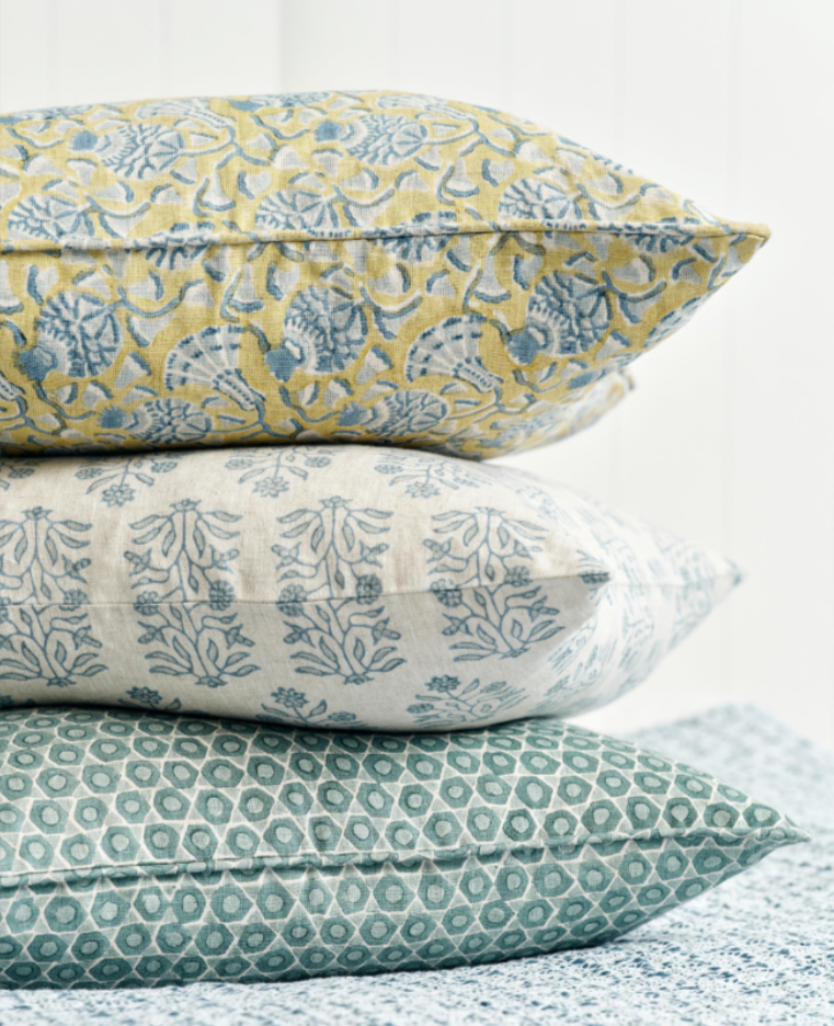 CARE INSTRUCTIONS: Cold machine wash separately on a delicate cycle with a very minimal amount of mild detergent. Do not tumble dry, soak or bleach. Iron at medium setting if necessary. For spot cleaning, gently dab the area with water (do not rub). Due to the nature of hand printed fabrics, variation in colour and pattern may occur. Keep out of direct sunlight to avoid excessive fading.