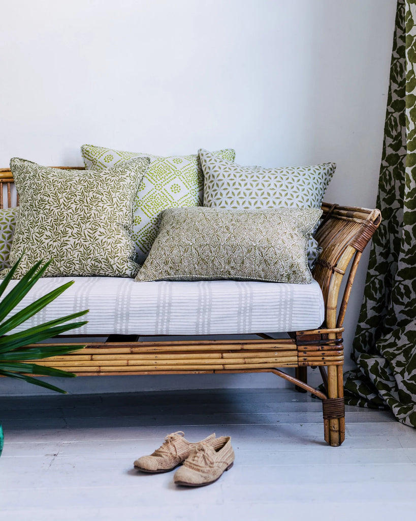 Cold machine wash separately on a delicate cycle with a very minimal amount of mild liquid detergent. Do not dry clean, tumble dry, soak or bleach. Iron at medium setting if necessary. For spot cleaning, gently dab the area with water (do not rub). Keep out of direct sunlight to avoid excessive fading. Due to the nature of hand printed fabrics, variation in colour and pattern may occur.