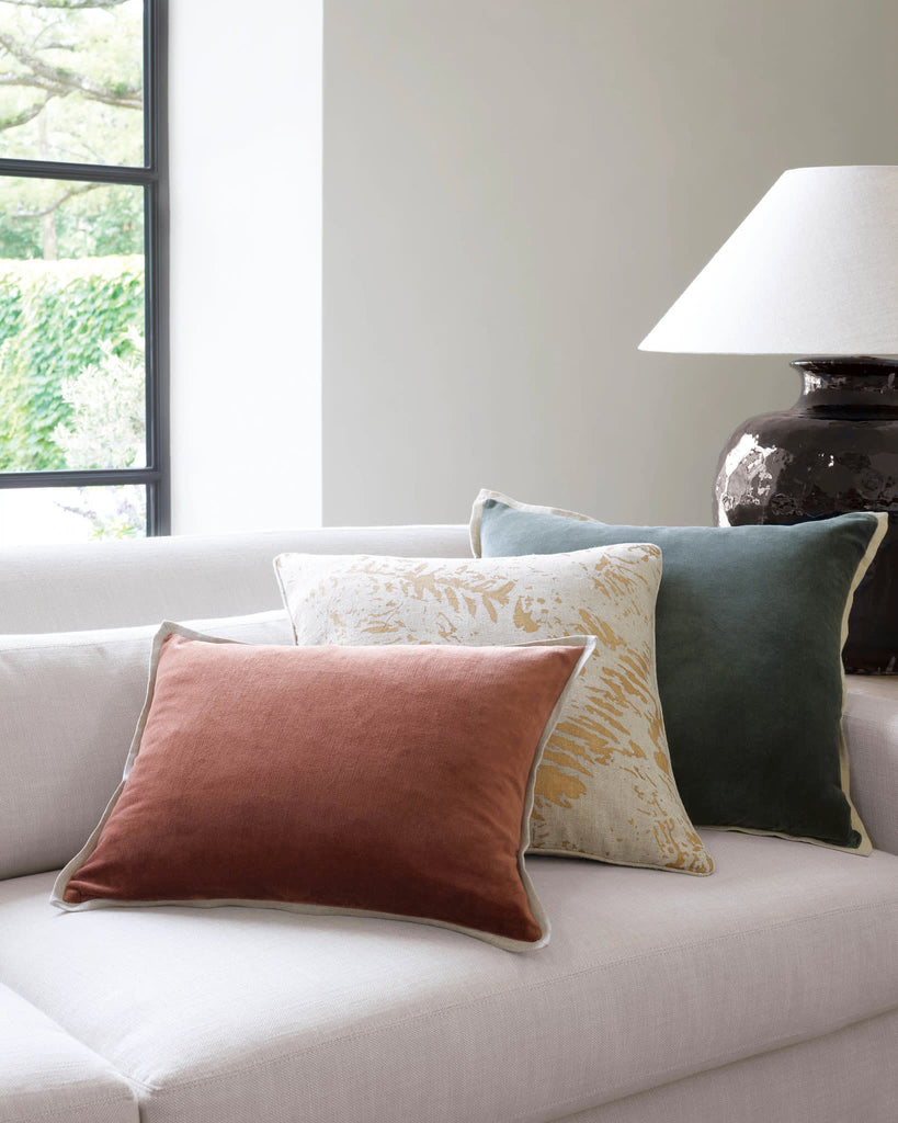 The Gehry Velvet Linen Decorative Pillow combines plush softness with refined craftsmanship. Backed with dyed-to-match linen and finished with a natural linen flange, this classic pillow will add a stylish touch to any bed, sofa, or chair.