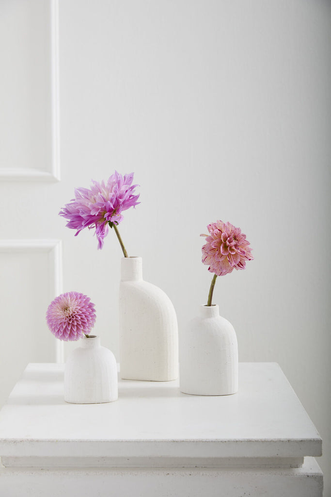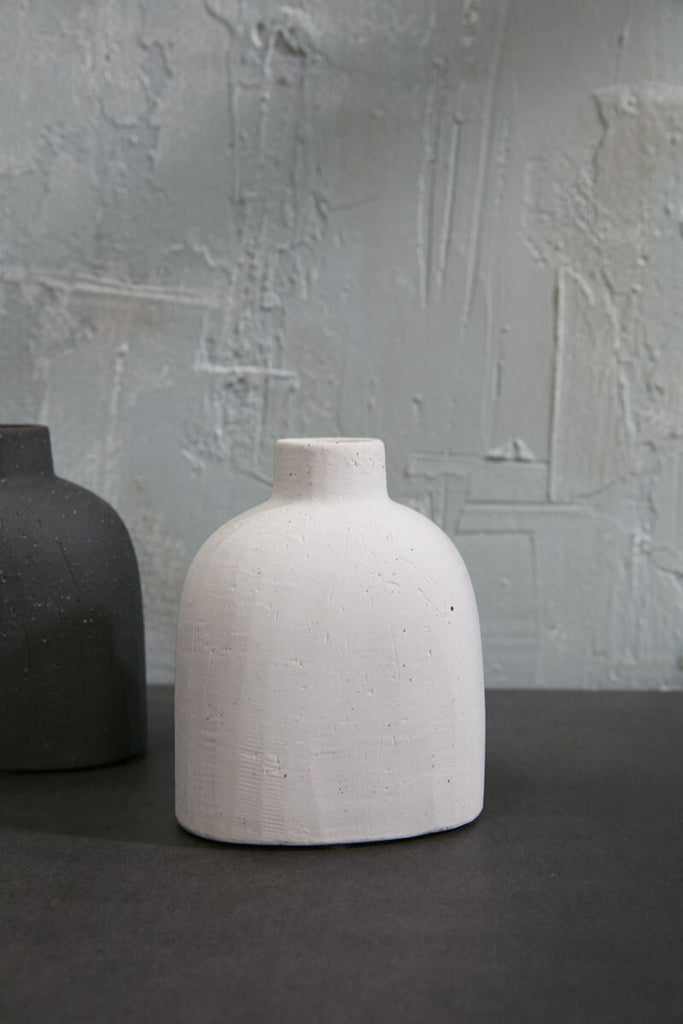 The white ceramic Karis budvase brings clean lines and natural texture to any space. Perfect for color blocking—pair it with bold hues or rich tones to let its minimalist silhouette shine. A must-have for modern décor and fresh florals.