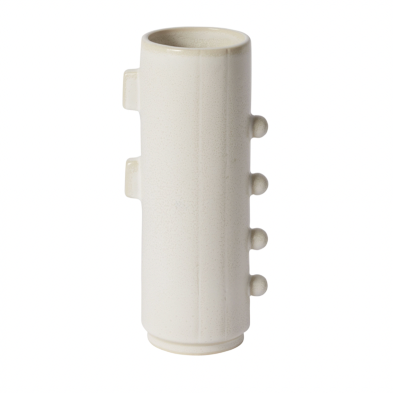 The Lizzie Vase is a cylindrical vase with square and circular handles. Eye catching and modern, this piece is a work of art.