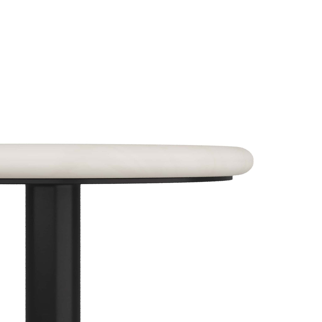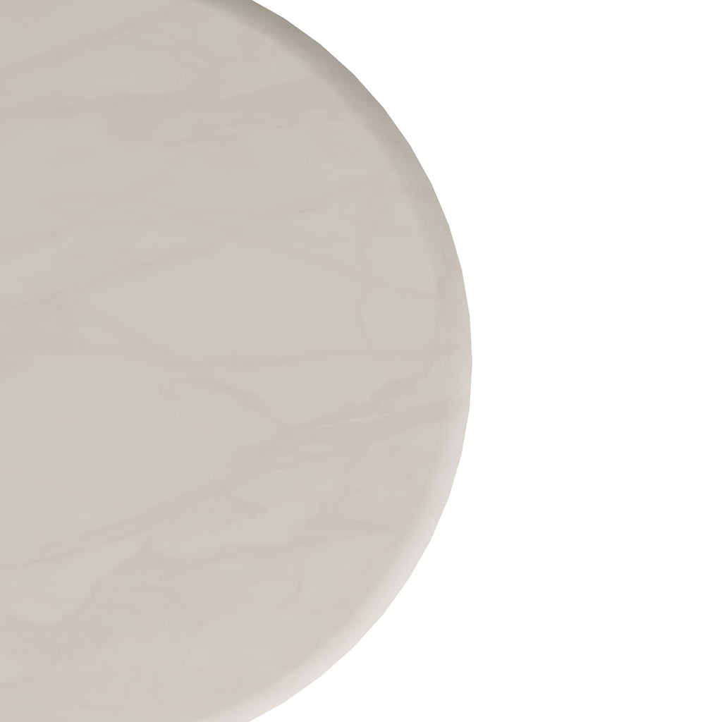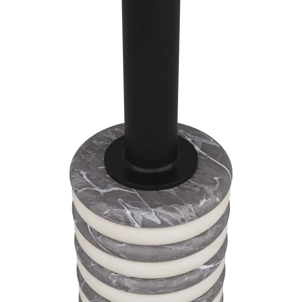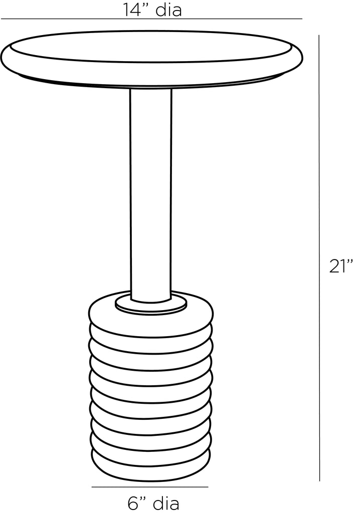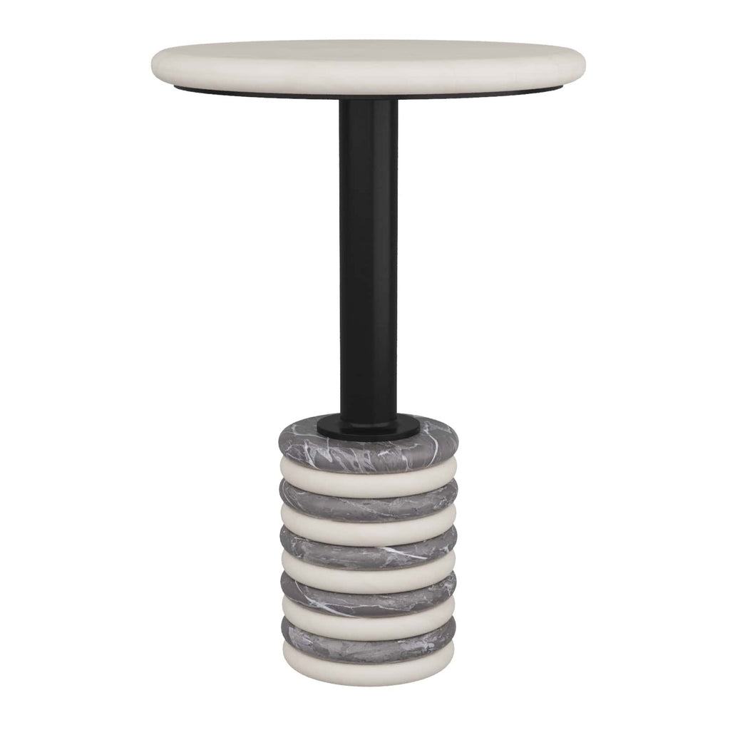 The beauty of graphic black and white create a high-contrast accent table with serious visual interest. The paola features a white marble top on a pedestal of blackened iron and a stack of alternating white and galaxy marble discs as the base. Finishes will vary.