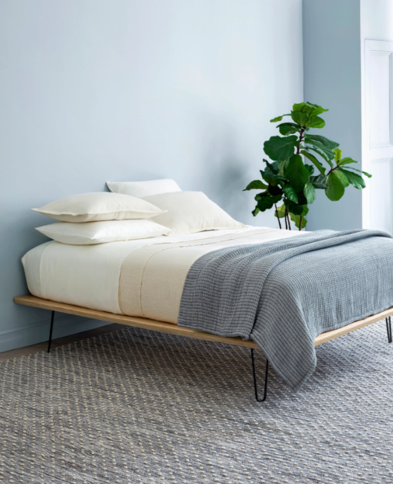 Precisely crafted parallel lines of white pick stitches make a graphic juncture with the black matelassé weave. This lofty, lightweight all-cotton coverlet is meticulously woven to have pockets of warmth that deliver extra nighttime insulation. An all-season essential to layer on the bed as needed. Reverses to same look and feel as the front.