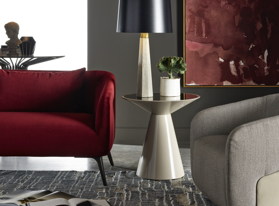 The Roni Round Accent Table is designed with a bronze mirrored top anchored by sleekly tapered body, inviting a contemporary charm and light into spaces.