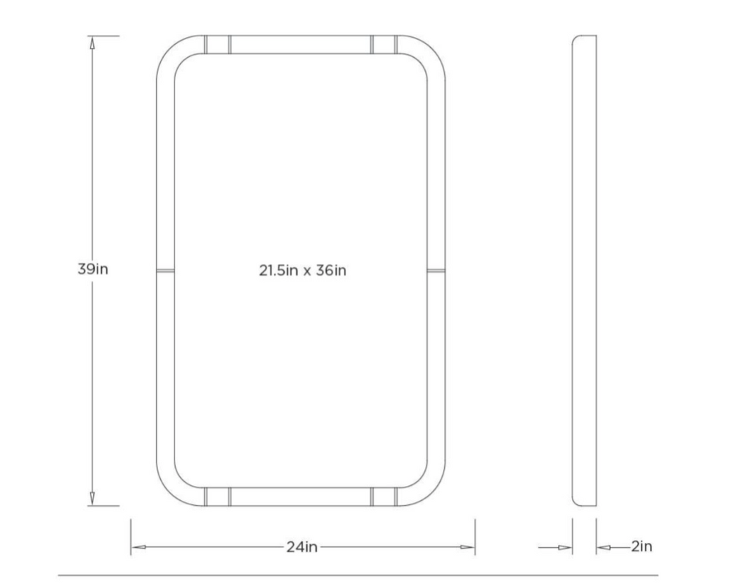 Overall Dimensions: 24"W x 39"H x 2"D