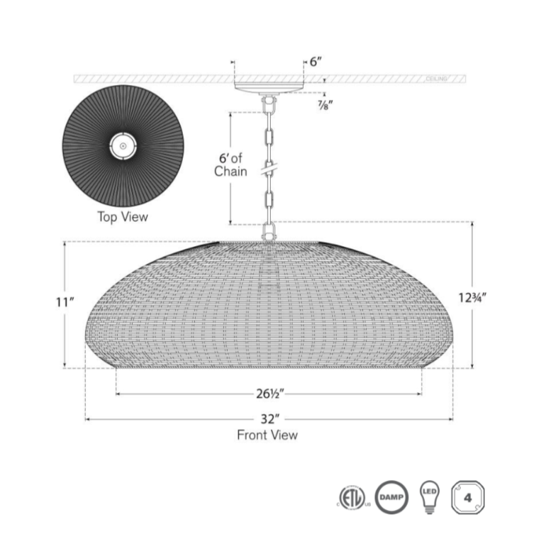 Overall Dimensions: 32"Dia x 12.75"H