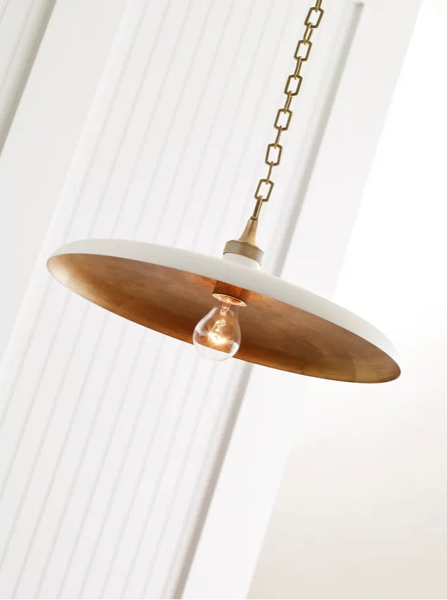 Piatto Medium 18"Dia Pendant, Plaster White/Hand-Rubbed Antique Brass