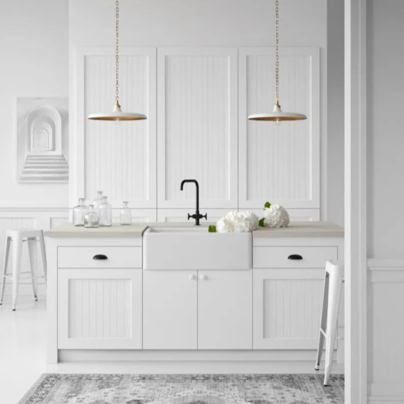 Thomas O'Brien's Piatto series showcases a new and fresh take on dramatic elegance. At once chic and casual, the distinctive low shades feature rustic gilding on the inside to reflect light in a modern way. The lights will add a distinctive yet graceful statement to kitchens, dining rooms and hallways.