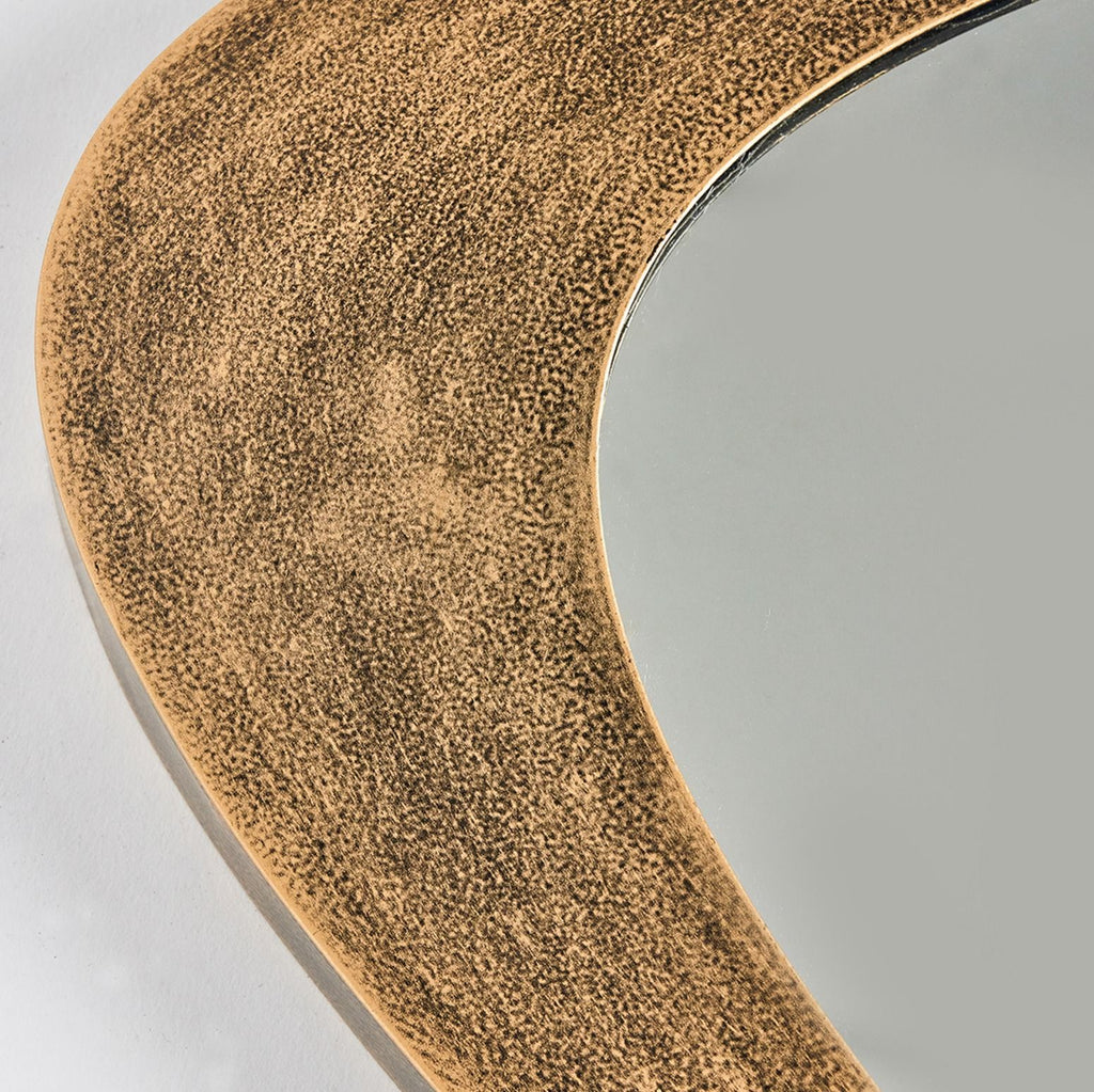 Surprisingly versatile but expectedly stunning, the Wales Mirrors present an organic, midcentury silhouette juxtaposed with an aluminum frame in an antique brass finish.