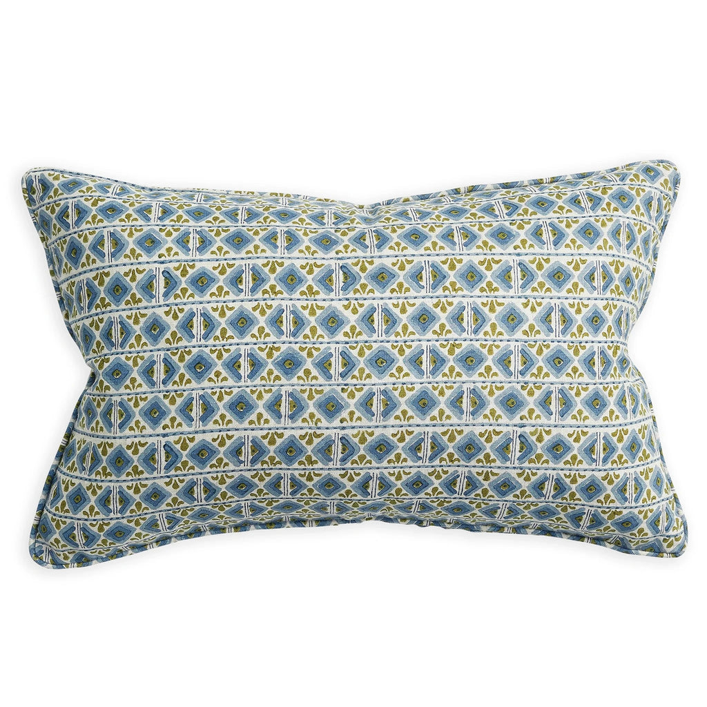 Ishtar Moss Azure Linen Cushion, 14" x 22"