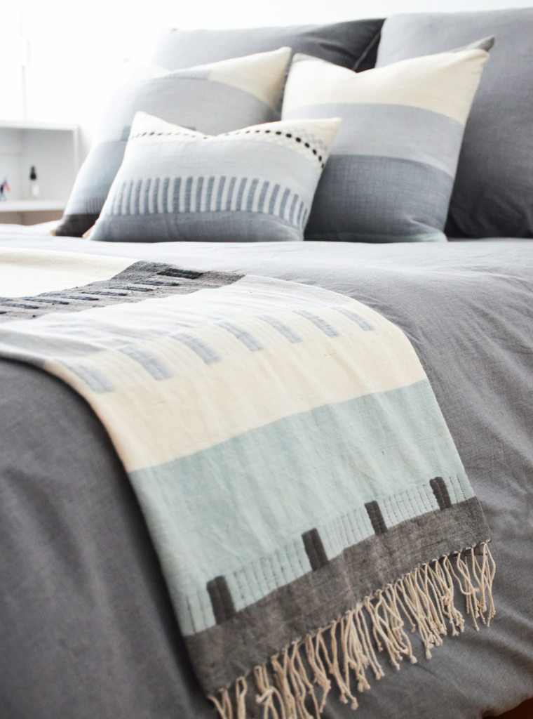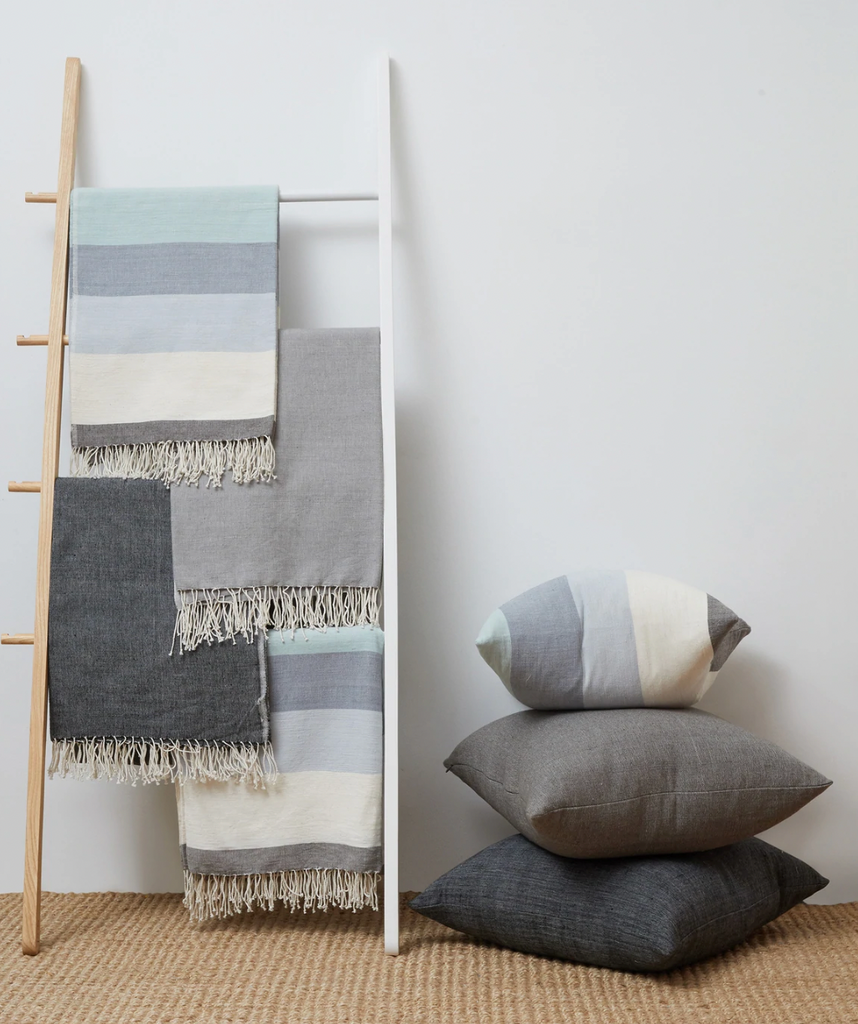 The Afar pillow’s bold stripes recall the striking swaths of color that layer one on top of the other from the land to the sky in the Afar region.  With colors inspired by the day’s changing light, this soothingly striped pillow will be a source of comfort throughout your day.