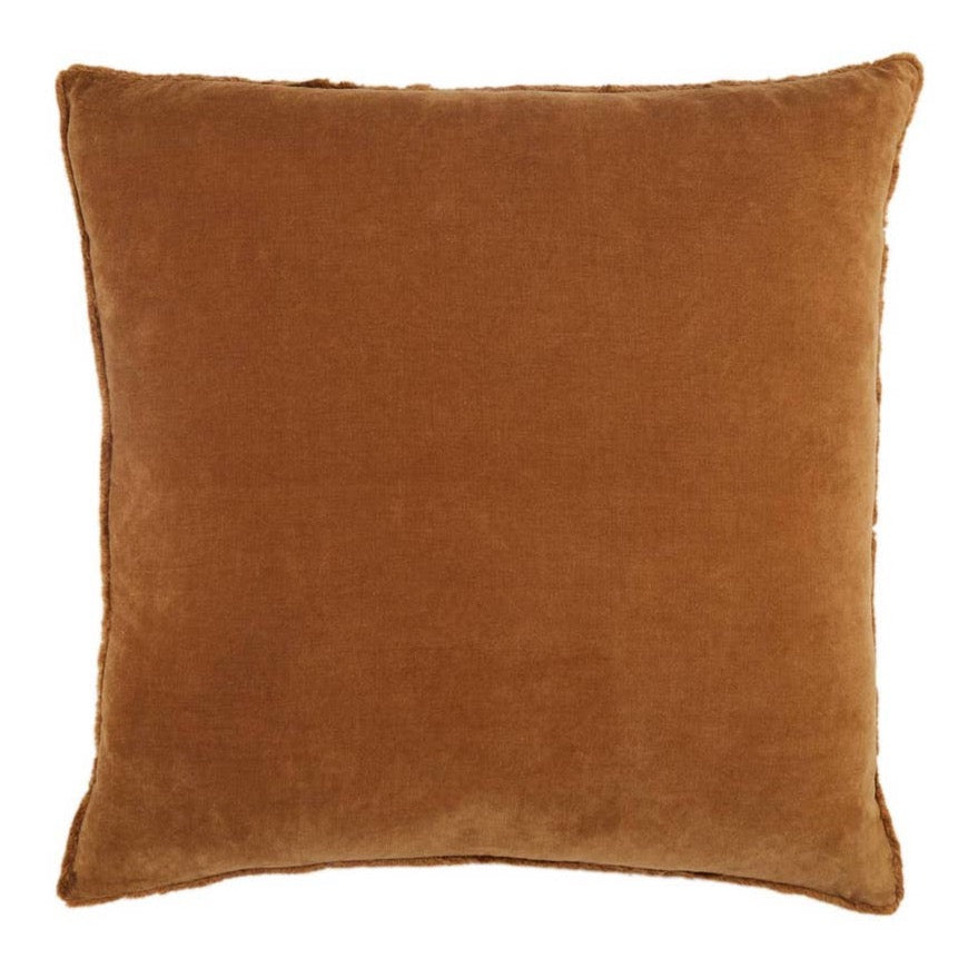 Soft and structured, the Nouveau collection blends Art Deco details and texture-building embroidery that is easy to mix and match with any style. The bronze Sunbury pillow features a versatile, solid design with fringe-trimmed edges.