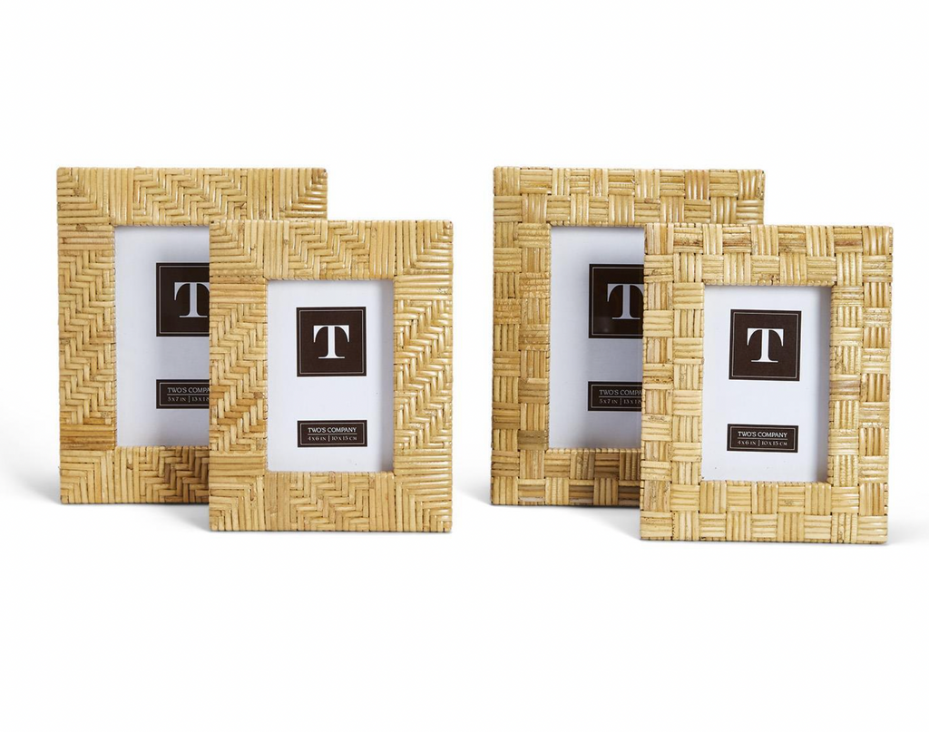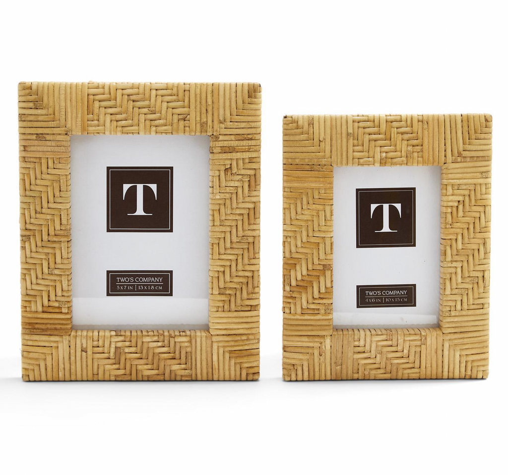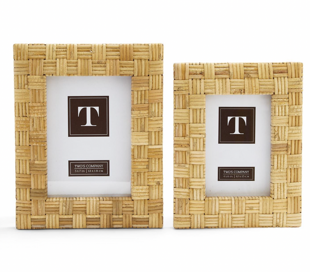 Natural hand-woven rattan photo frames over a structure beautifully done in 2 patterns. Natural palette to compliment any home dècor.