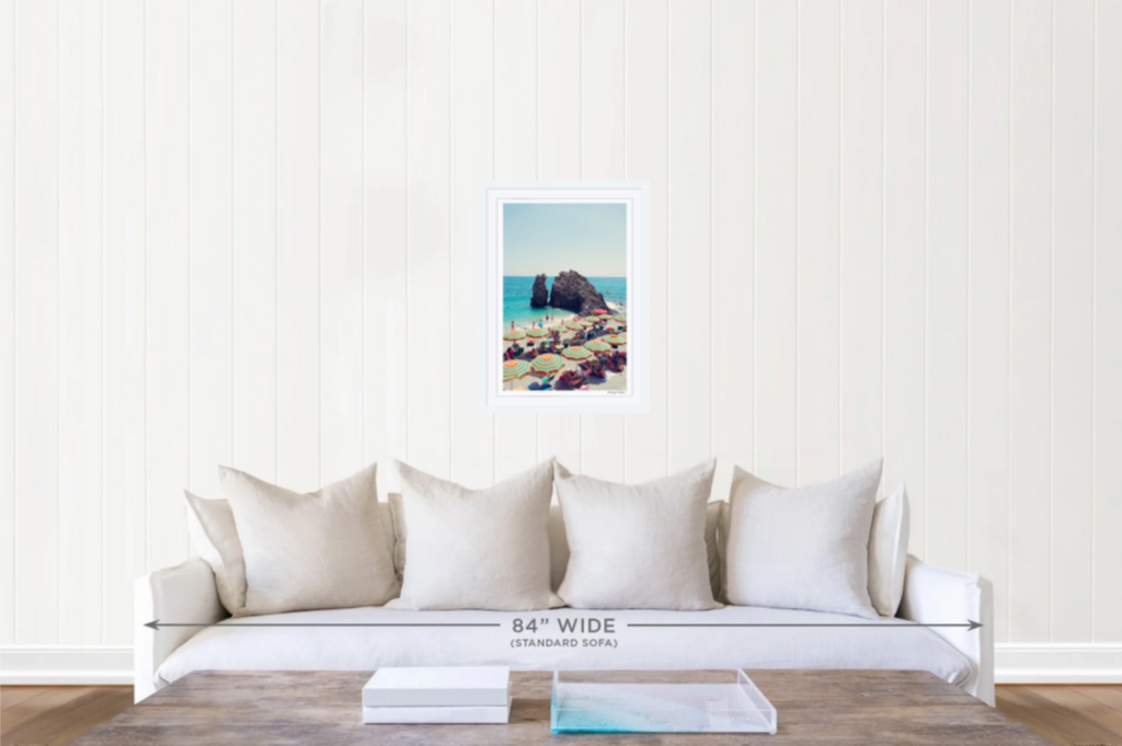Add a retro-hued view to your space with EDEN ROCK, CINQUE TERRE VERTICAL of the timeless La Dolce Vita series. The striped umbrellas and vibrant palette add a colorful touch to any space. Inspired by the glamorous mid-century Italian Riviera, Gray captured classic moments along the coastline and photographed this series during a month-long road trip covering over 2,000 miles.