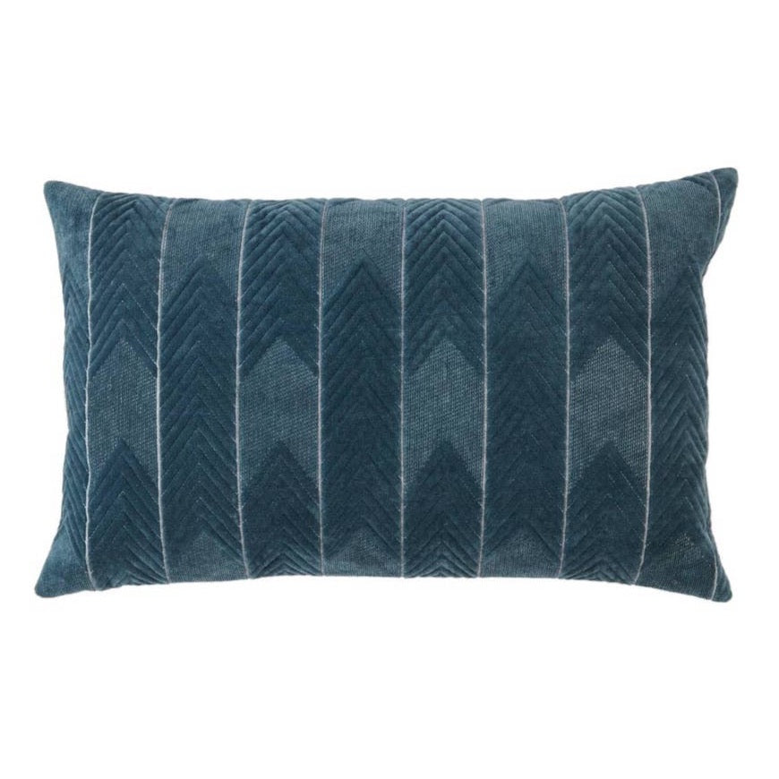Soft and structured, the Nouveau collection blends Art Deco details and texture-building embroidery that is easy to mix and match with any style. The dusty blue Bourdelle lumbar pillow boasts an embroidered chevron design on the cotton velvet front.