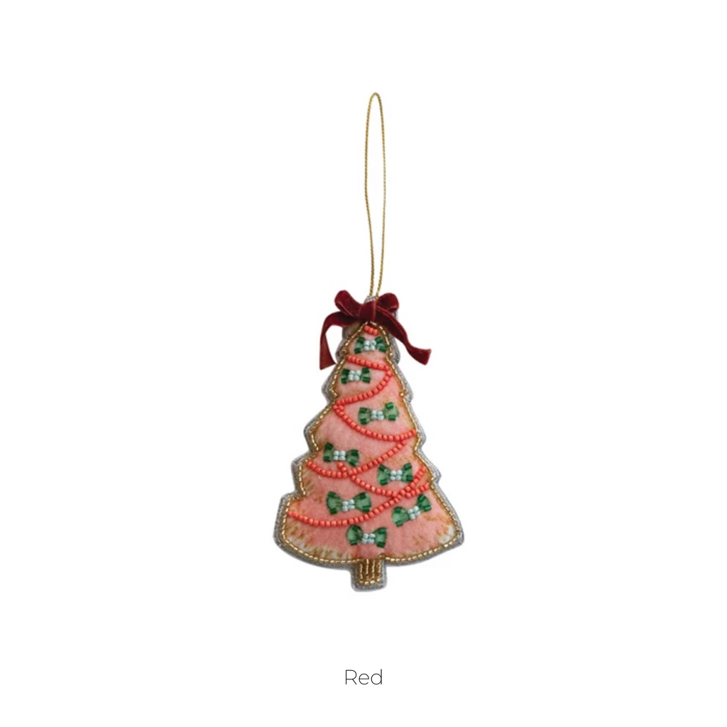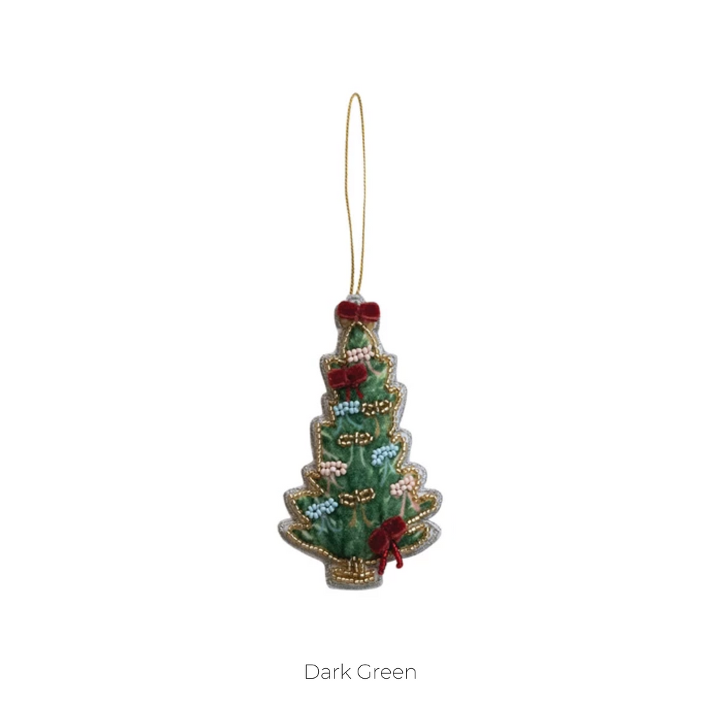 Handmade Beaded Fabric Christmas Tree Ornament, 4 Styles