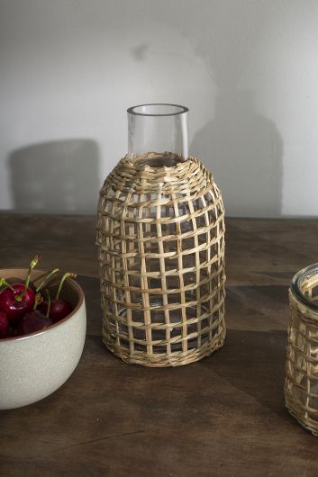 The Jaxon Carafe is rattan covered glass for a tropical yet modern look, in neutral tones for a versatile and stylish look. Add style to the home or bring a neutral tropical vibe to your next event.