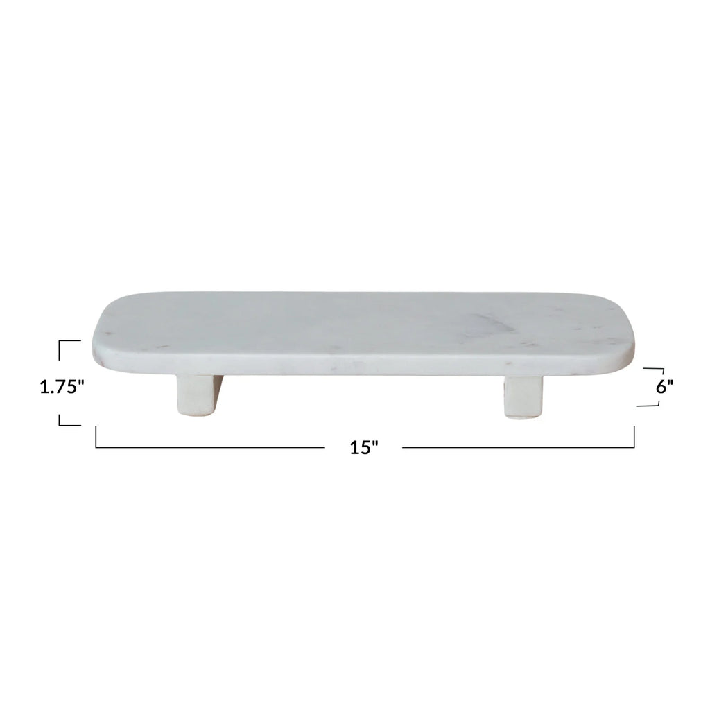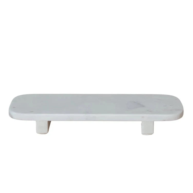 The board's height makes it an ideal stage for showcasing cheese selections, fruit arrangements, or artisan bread. The footed design not only adds a touch of grandeur but also ensures stability, keeping varied delicacies securely in place. Crafted from the finest white marble, this serving pedestal is not only a beautiful addition to the serveware collection but also a practical choice for both entertaining and everyday use. Its timeless design and durable construction will serve everyone for years to come.