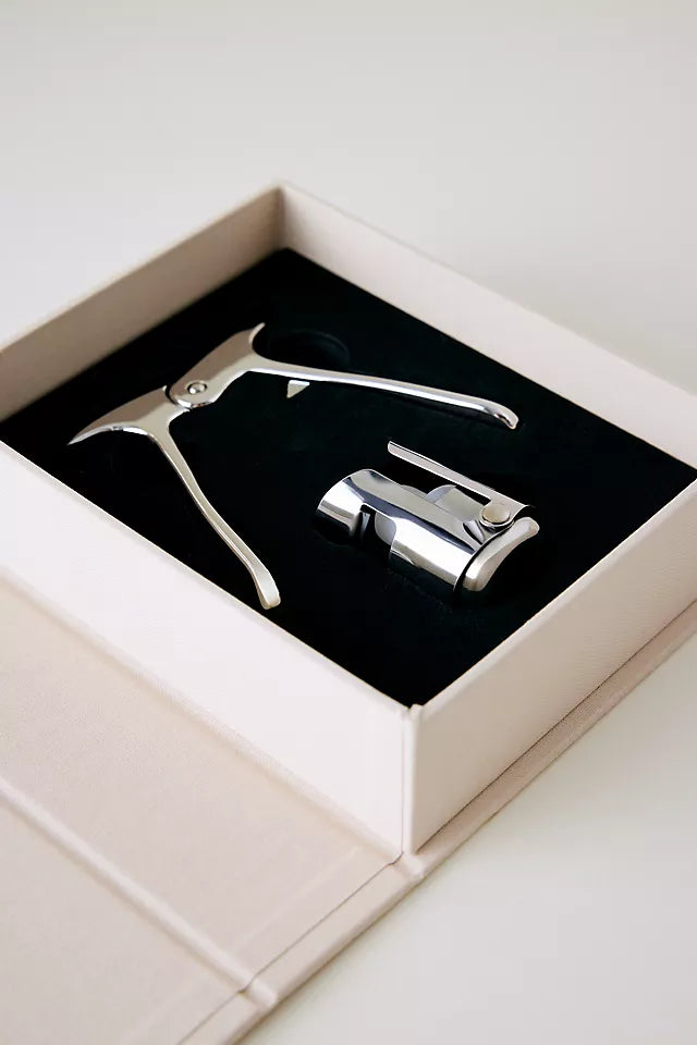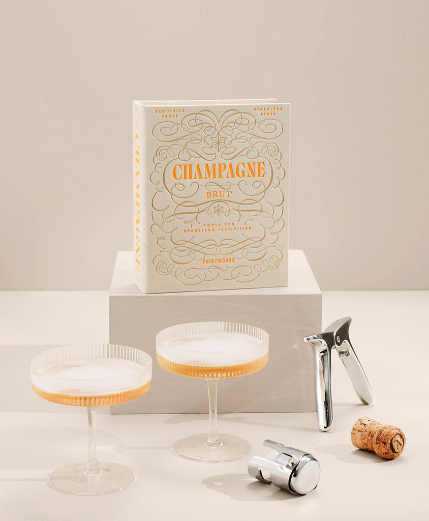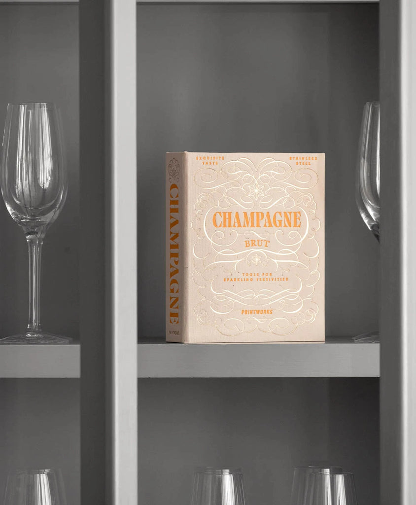 Discover the exclusive Champagne Kit, elegantly presented in a stylish, book-like box. Inside, you’ll find all the essential tools for celebrating in style. When not in use, this kit makes a charming addition to your kitchen decor, standing proudly alongside your favourite recipe books.