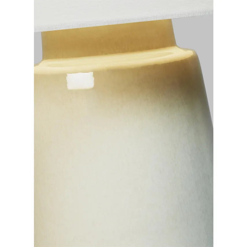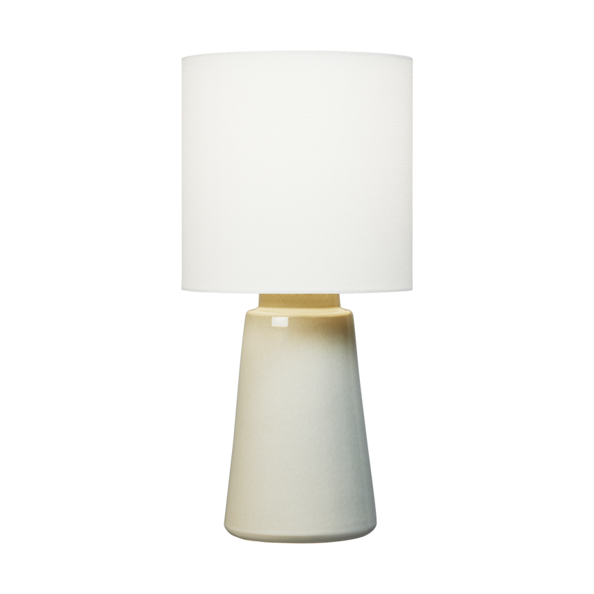 The Vessel Medium Table Lamp by Barbara Barry features a ceramic body finished with a reactive glaze, creating soft tonal variations in four elegant colors. Topped with a linen drum shade, it offers a warm, diffused glow that enhances any interior. Dry-rated for indoor use, this timeless design brings effortless elegance to modern and transitional spaces.