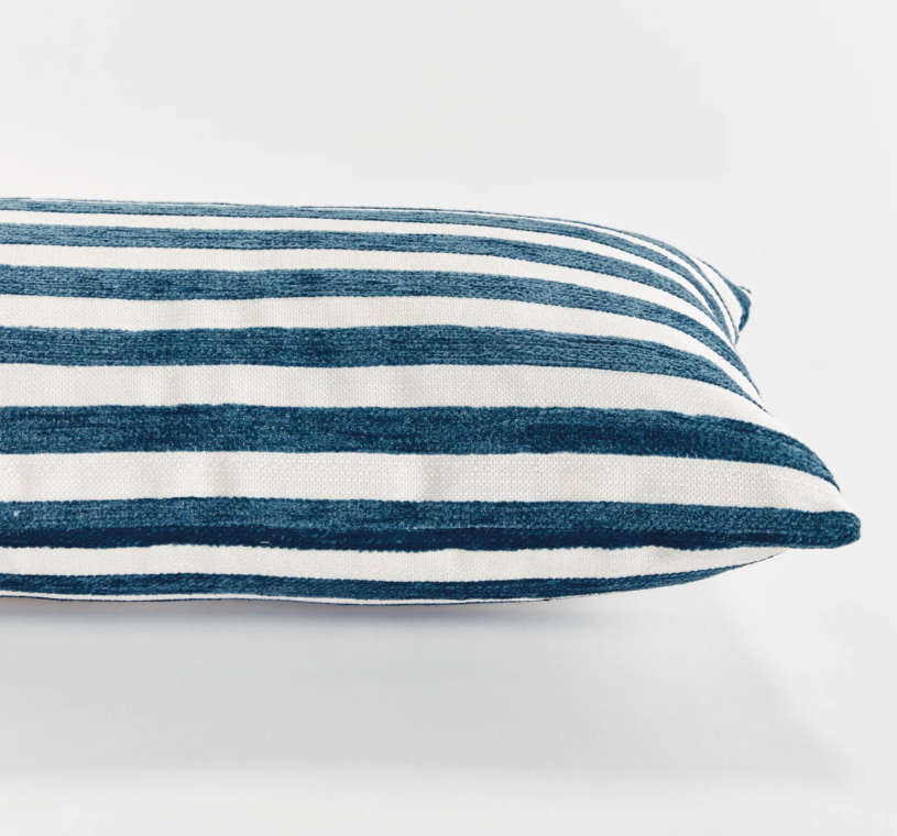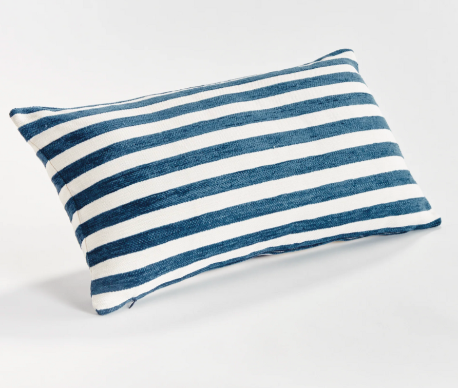 Gideon Indoor/Outdoor Lumbar Pillow, 12" x 22", Blue Stripe