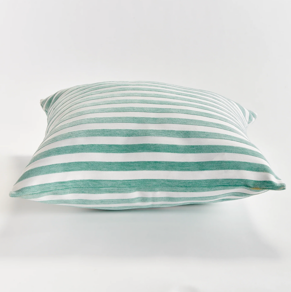 The indoor pillow that lives beautifully outdoors. Enjoy the upscale luxury and durability of Jacquard. With a bold striped pattern, it plays well with any palette. This pillow is weather resistant and responsibly made. Filled with 100% recycled fibers.