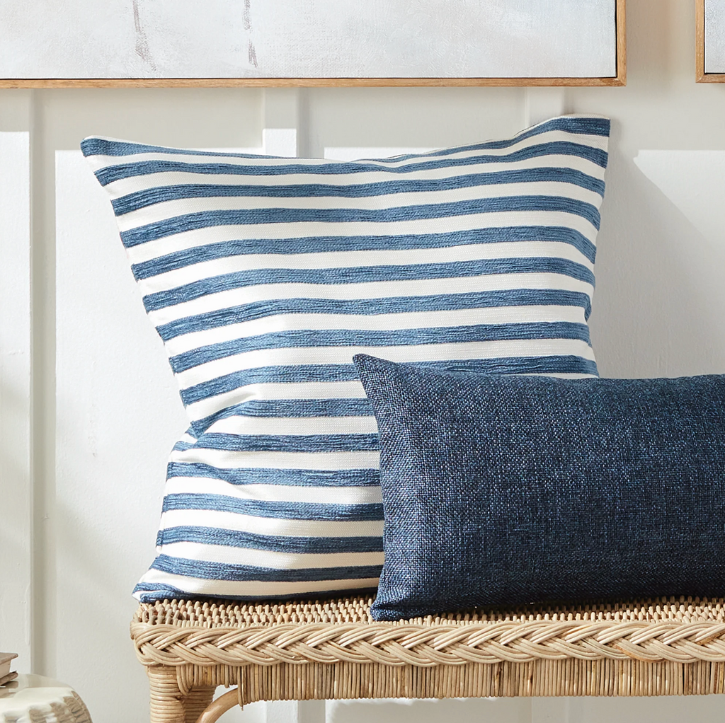 Gideon Square Indoor/Outdoor Pillow, Blue Stripe, 24" x 24"
