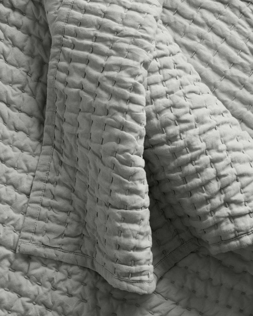 European Linen Cotton Stitch Quilt Collection - Mist, 2 Sizes