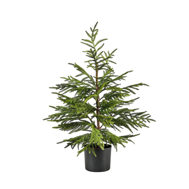The Real Touch Norfolk Pine Potted Tree is among the highest quality of artificial holiday greens to give your seasonal Christmas decor a winter woodland style. It feels and looks just like the real thing, and is an exact replica of nature. It deserves to be the star of any mantel or tabletop centerpiece.