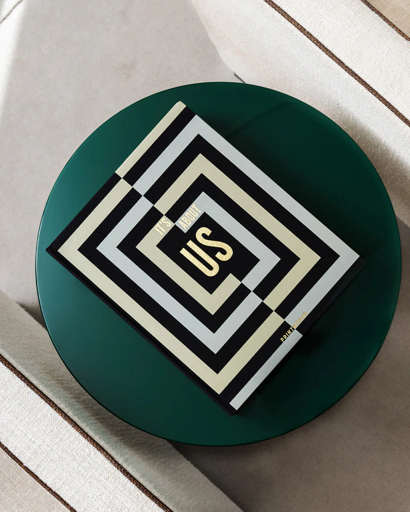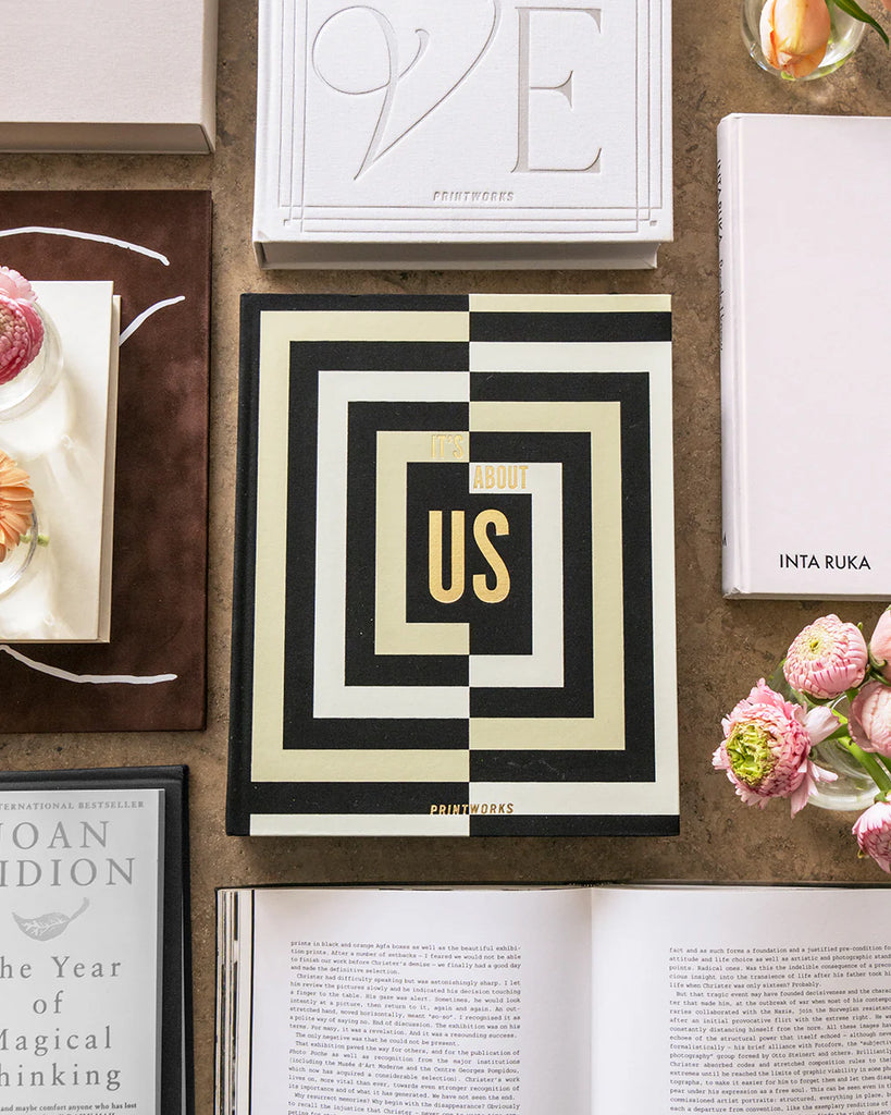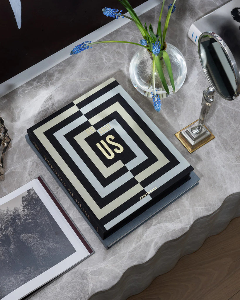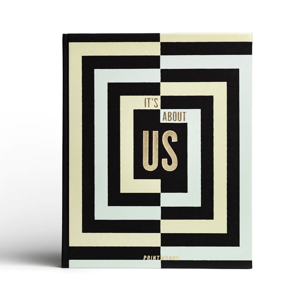 Discover the "It's About Us" coffee table photo album, featuring an elegant, multicolor cloth cover in black, gold, and white with gold foiled text. Place the photo album on your coffee table to keep those moments always within reach while elevating your home decor.
