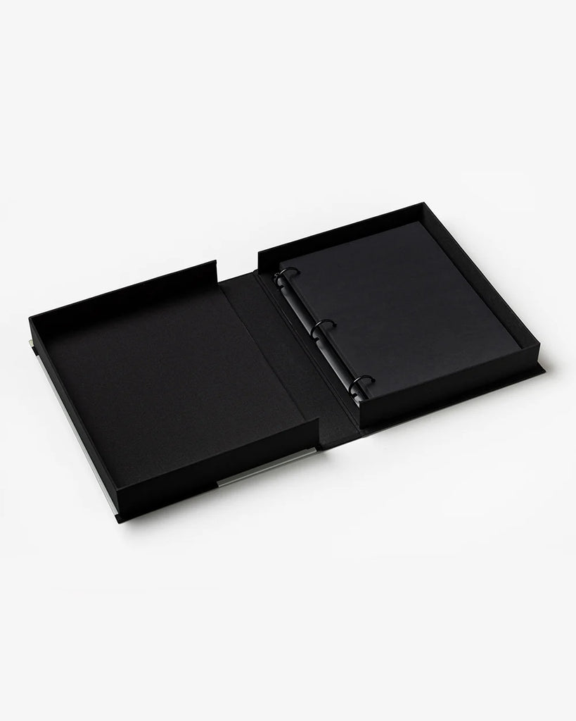 The photo album includes 30 pages of high-quality black photo paper in the size 11" × 8.3" (60 pages if used double-sided), ready for your memories. Easily attach your photos with sticker or corners. The album can hold up to 40 pages.