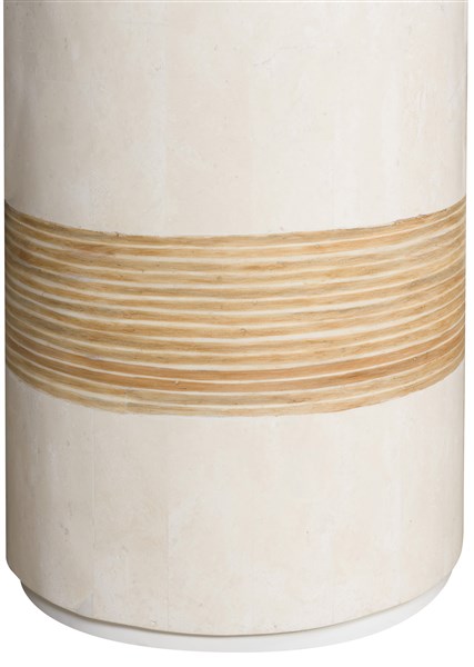 White Agate Clad Table, Rattan Inlay
