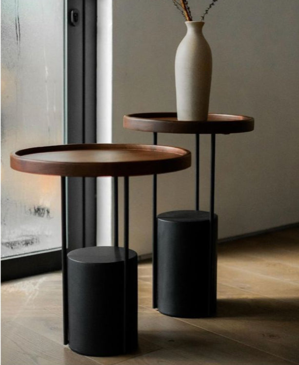Cloch Low Side Table, Walnut, Black, 17.7" Dia × 19.3" H
